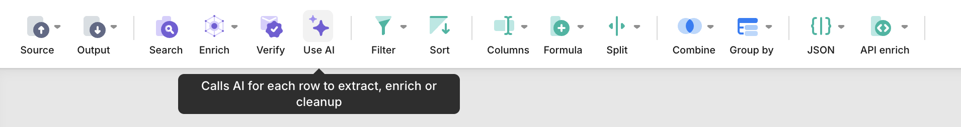 The Use AI node helps you run an AI model on your table, row by row. You write a prompt, pick a model, and the node returns the results for every row in new columns.